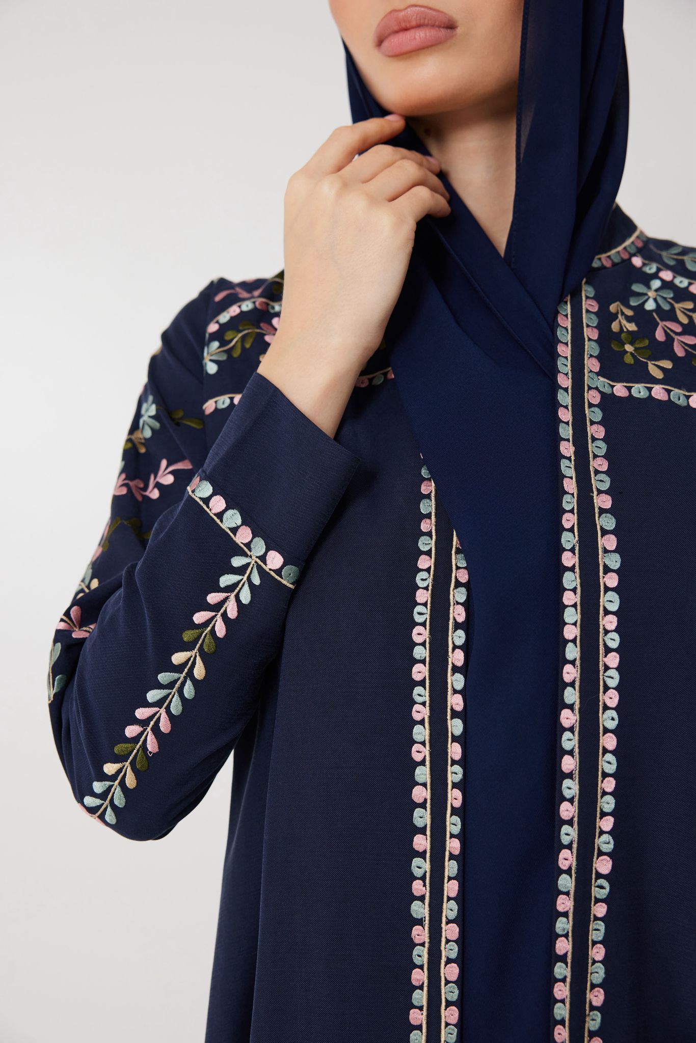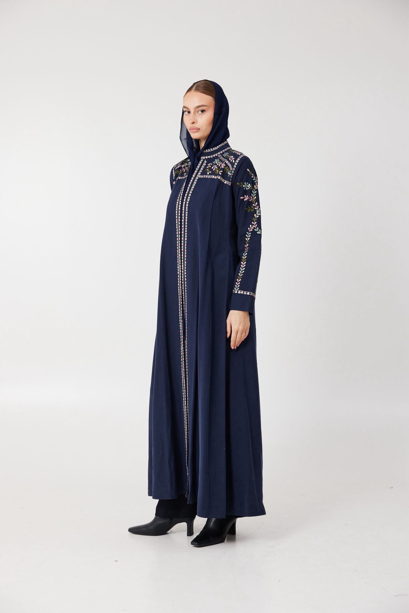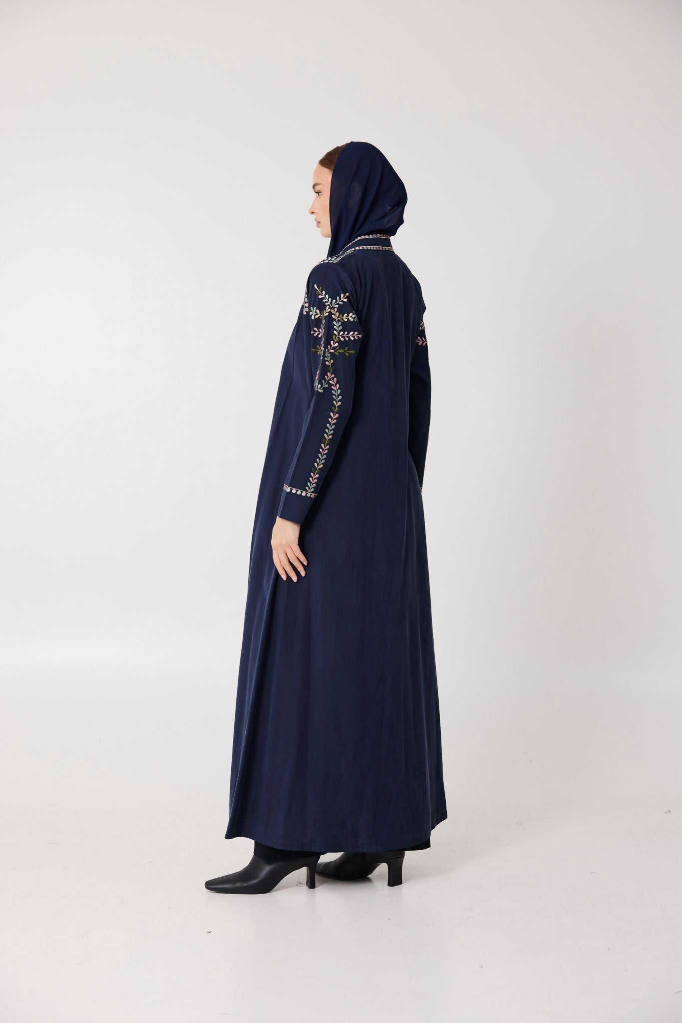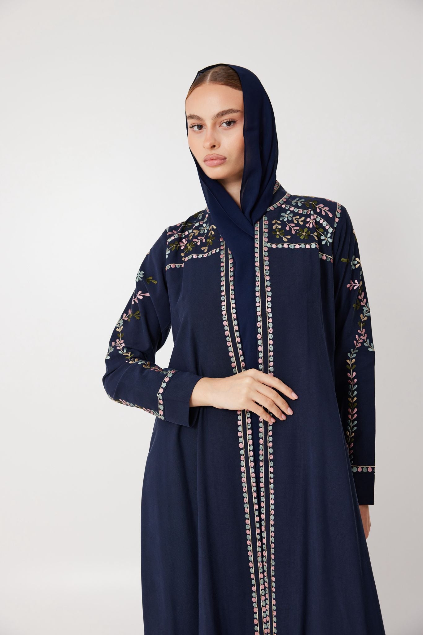Deep navy velvet flows effortlessly in this timeless piece, detailed with delicate floral embroidery. Elegant, composed, and slightly untamed — Lune Sauvage is made for evenings that call for subtle strength and beauty.